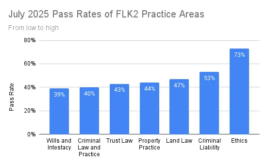 Wills and Intestacy is known to be an exceptionally hard subject for many. Three other subjects in particular have been on a downward trend. The Legal System (July 2025 represented the worst performance yet):